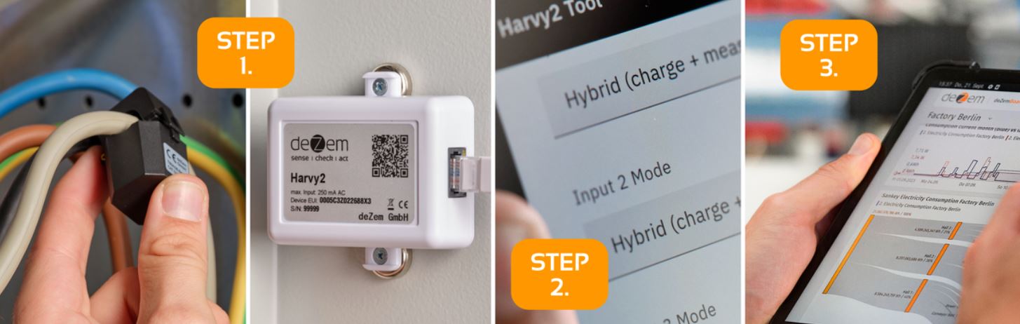 The Harvy2 is a LoRaWAN sensor that measures current and power without batteries or external power. Powered by the conductor's magnetic field (min. 1A), it offers maintenance-free, wireless monitoring. Simply clamp it on, connect up to four current transformers, and get real-time data on your IoT platform. Add a voltage converter for full three-phase power analysis. Features include intelligent event filtering, configurable reporting, and easy web interface setup.