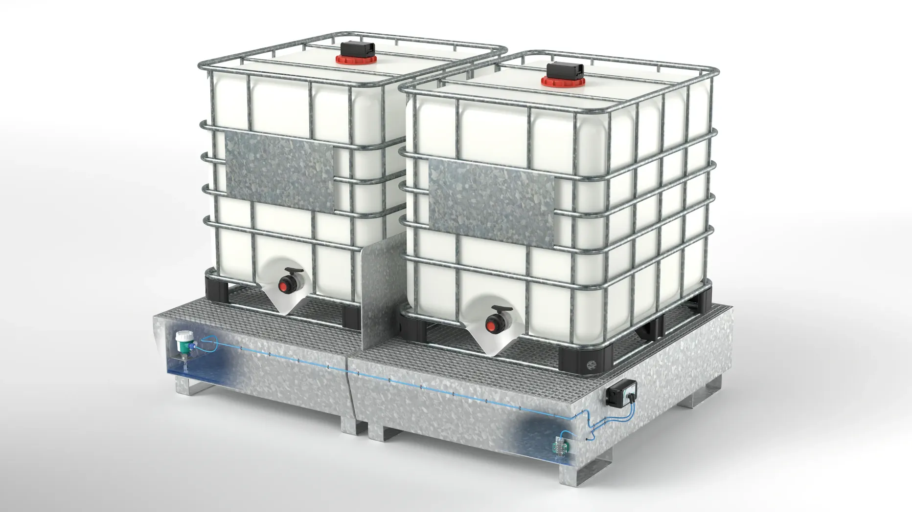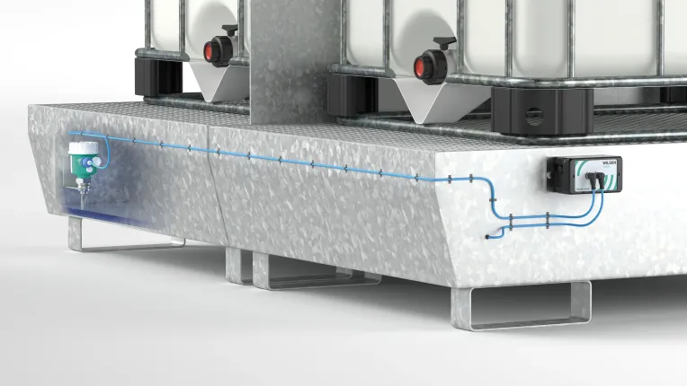 leaks and maximum fill levels in collection trays beneath the IBCs. It allows